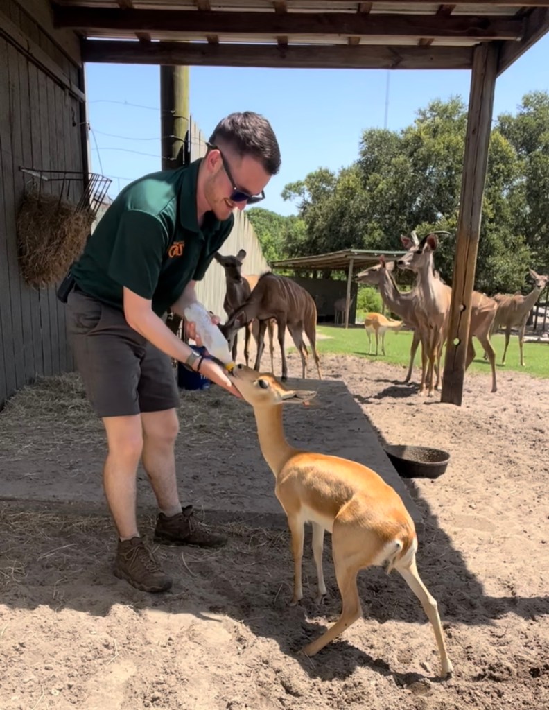 That summer, I participated in research with Field Projects International in the Peruvian Rainforest, studying Emperor Tamarin monkeys alongside ten other primate species. In May 2022, I embarked on a new journey as a full-time hoofstock keeper at the Gulf Breeze Zoo in Pensacola, Florida. This role included caring for and training giraffes as well as managing a diverse array of animals such as rhinos, hippos, zebras, and gazelles.