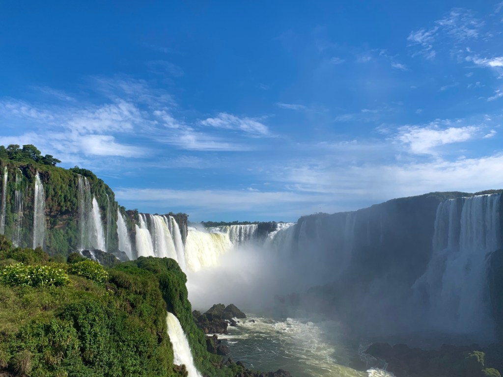 The next 2 days were in Iguazu falls which is a beautiful spot that lands on a point where 3 countries touch (Brazil, Argentina, and Paraguay). This is the largest waterfall in the world if you add all the many different falls together. I went to a bird sanctuary and saw many kinds of macaws/other birds, went to the Brazilian and Argentinian side of the waterfalls, and took a boat ride under one of the smaller waterfalls getting completely drenched haha. It’s crazy going from a freezing place to somewhere that is 90 degrees or hotter and all I’m wearing is shorts, a tee shirt, and sandals. (BIG thanks for my friend Aubrie who took my suitcase filled with all my winter clothes back home to NC so all I had to bring was my backpack.)