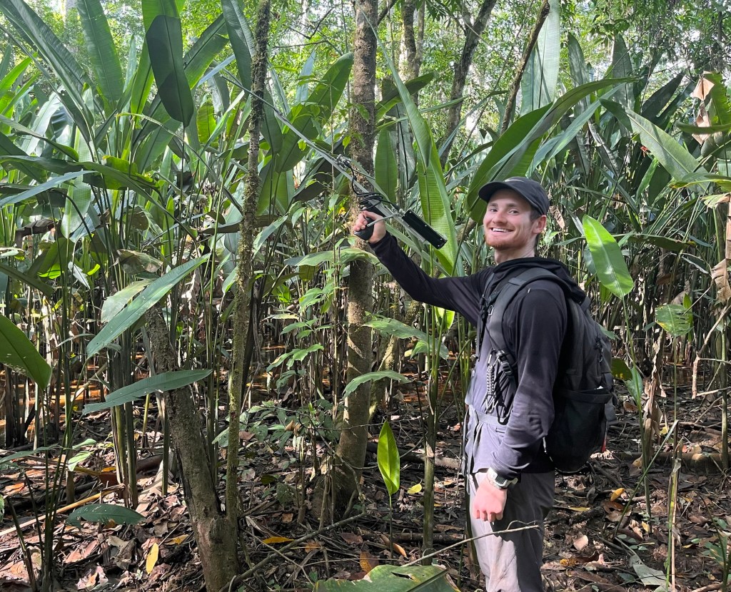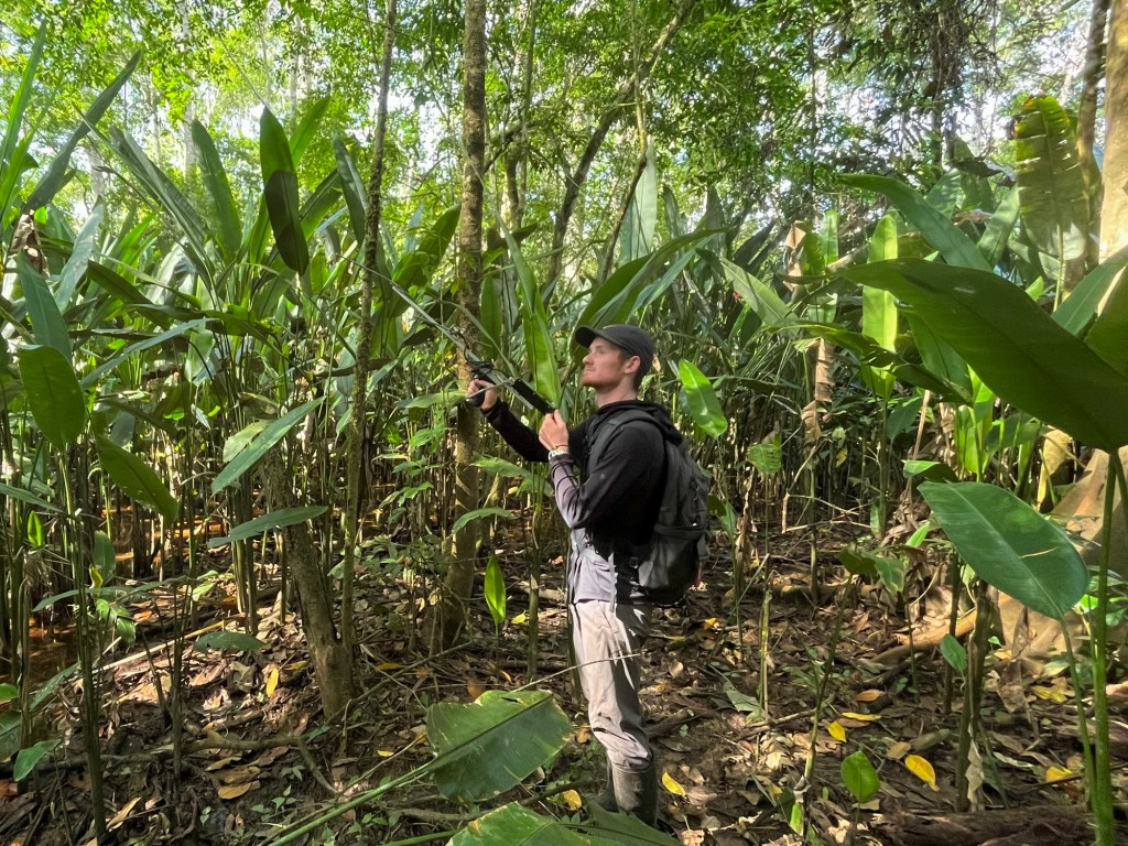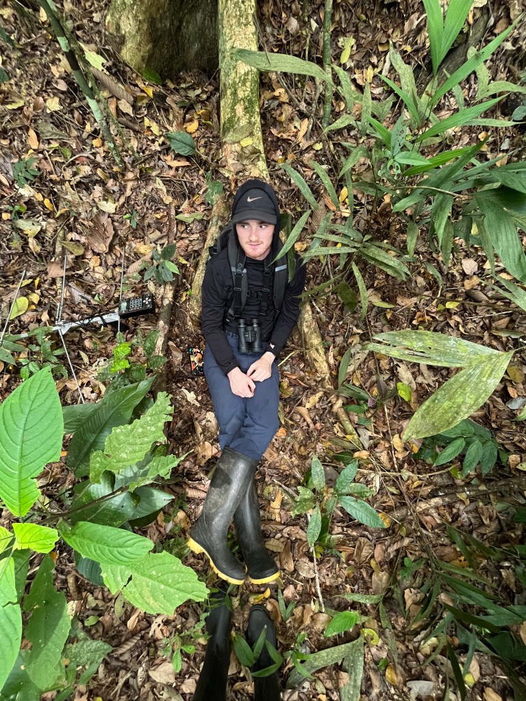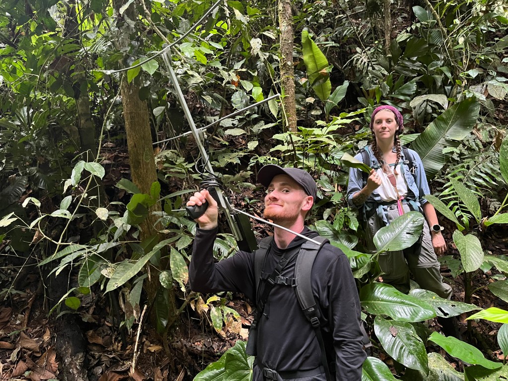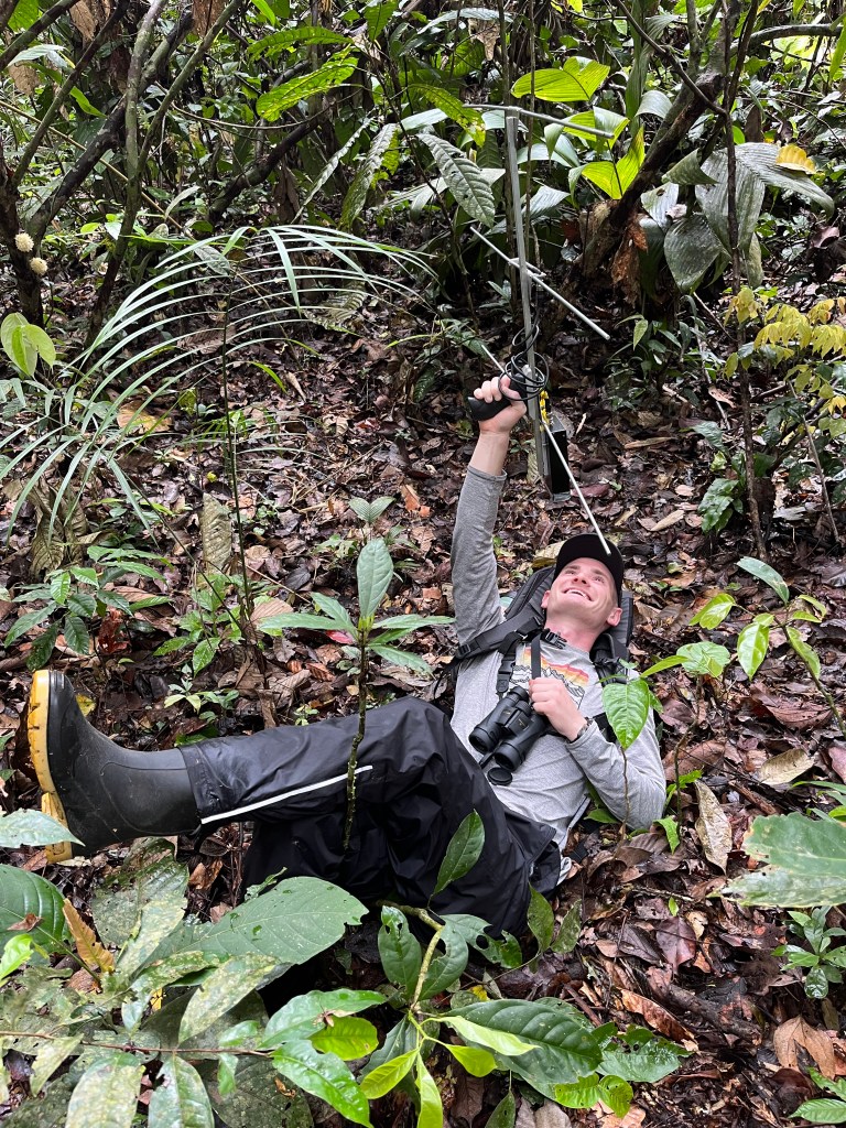 Now a little lesson on what telemetry is and how we actually find the monkeys. One monkey in the group (usually the dominate breeding female) will have a very light radio collar on. We use this old telephone looking wire thing which connects to a signal receiver, and we can change the frequency of the signal similar to changing the radio station to look for a specific station. In this case, changing the frequency changes which group of monkeys we will be tracking. Starting off at camp you point the telemeter in 4 cardinal directions seeing which direction is stronger. You can tell by a faint beep that emits from the receiver which direction the monkeys are in. From there you go walking in that general direction on our trail system until you have to enter the dense jungle. Once you get close enough, the signal will be very strong in all 4 directions meaning that you are very close to that group. That is when you use your sight and hearing to look for movements, or listen for jumping from branch to branch. The monkeys always know that you are there way before you realize that you are even near them haha. So being super knowledgeable of your surroundings helps spot them before they disappear further in the jungle.