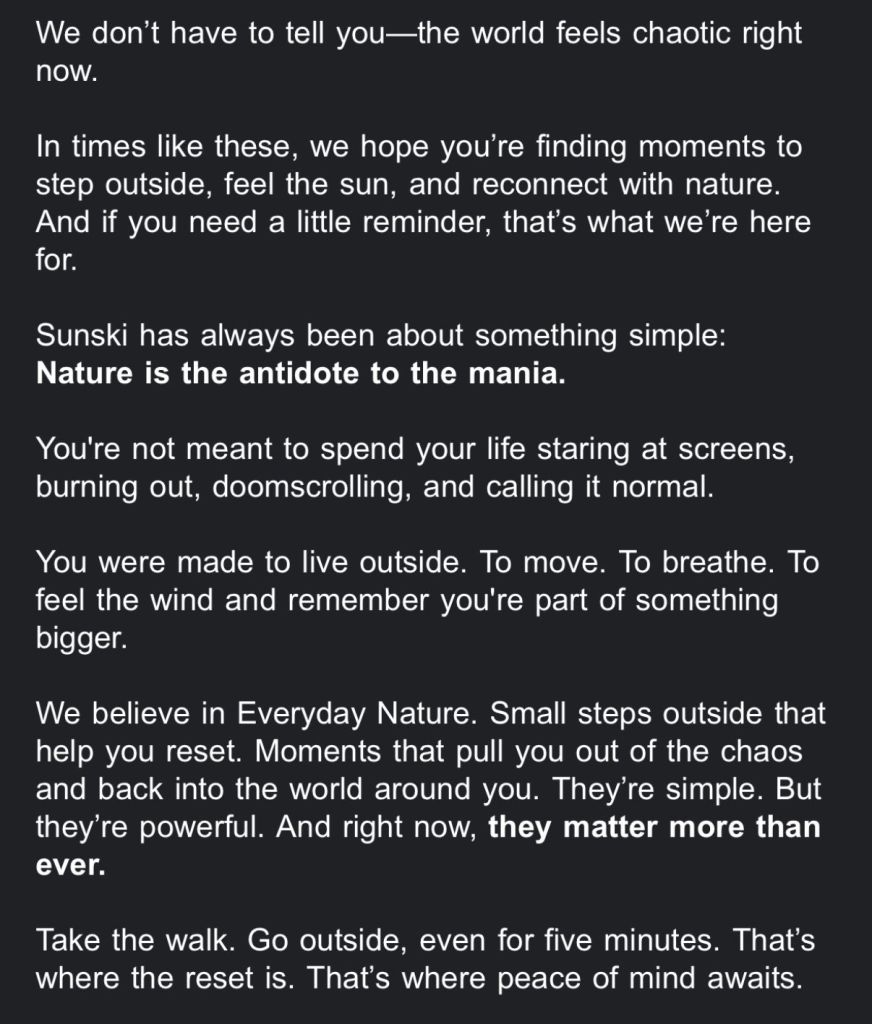 Being back in nature is such an incredible feeling. The way you lose track of what’s going on around you and just focus in on the ecosystem around you. The plants, the animals, the weather. How you feel when you step outside and just get lost. Where you don’t want to leave. That is feels like heaven on earth. The insert that I have below talks about how we aren’t made for the indoors. We have so much built into us that all comes back to nature and being connected with the world in our own ways. My favorite sunglasses brand, Sunski, wrote this really important email that describes perfectly as why we should be outside as much as possible, and when in times of doubt to turn to what has always been here… nature. Go take some moments outside to yourself and just soak up some sun wherever that might be for you. A phrase that I love to live by is “live a little“. I love it so much that I have it tattooed on me to remind me when I’m feeling down and need some inspiration.